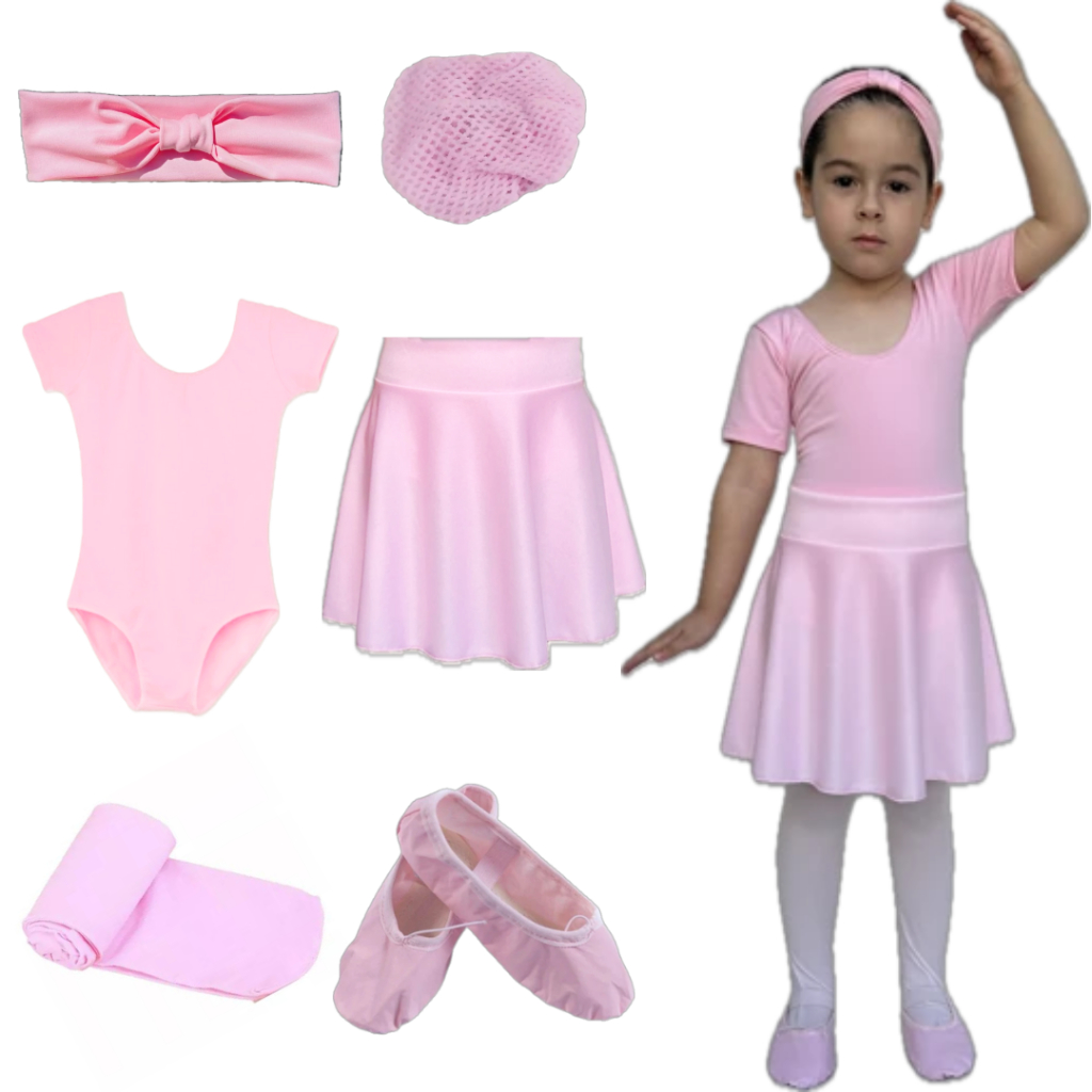 Kit Ballet Infantil 6 itens/ uniforme para dança completo - Saia transpassada