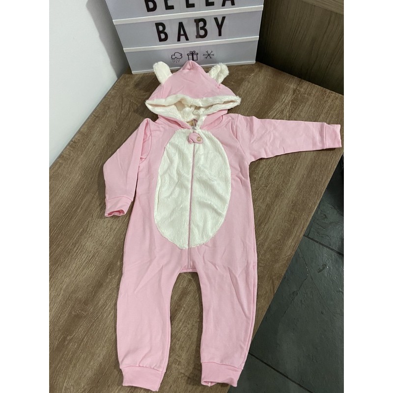 Macacão Bebê com Bordado Coelha no Pezinho 100% Algodão Suedine P M G para Menina