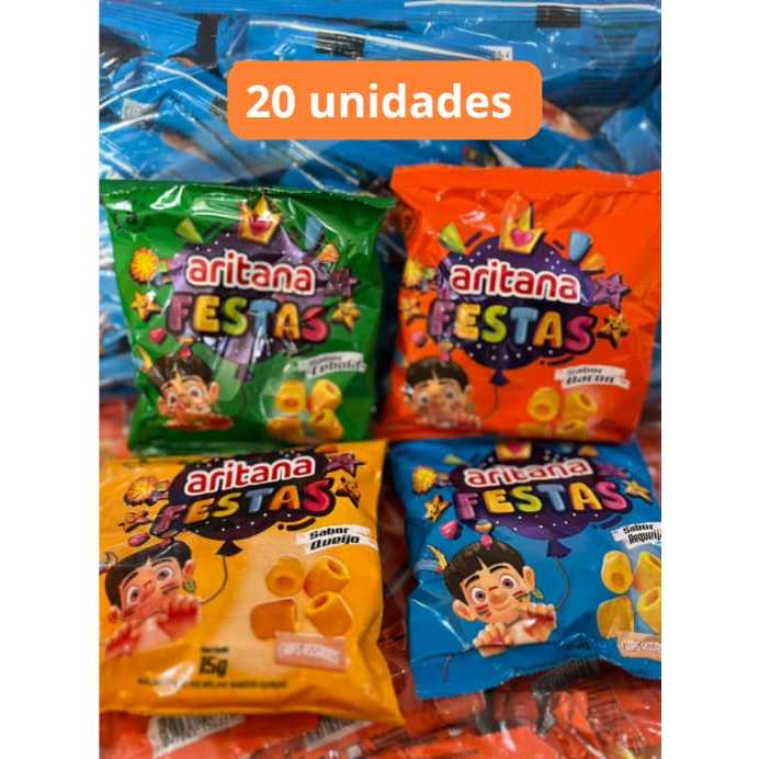 20x Chips - Salgadinho - Aritana tubos 15g - Sabores - Festa