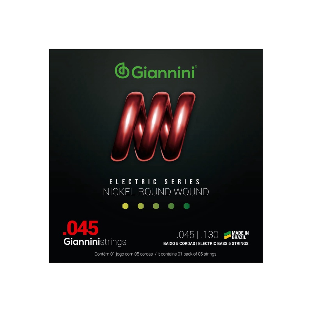 Encordoamento Giannini -- Baixo 5 cordas -- Tensão Pesada -- .045 -- GEEBRS5