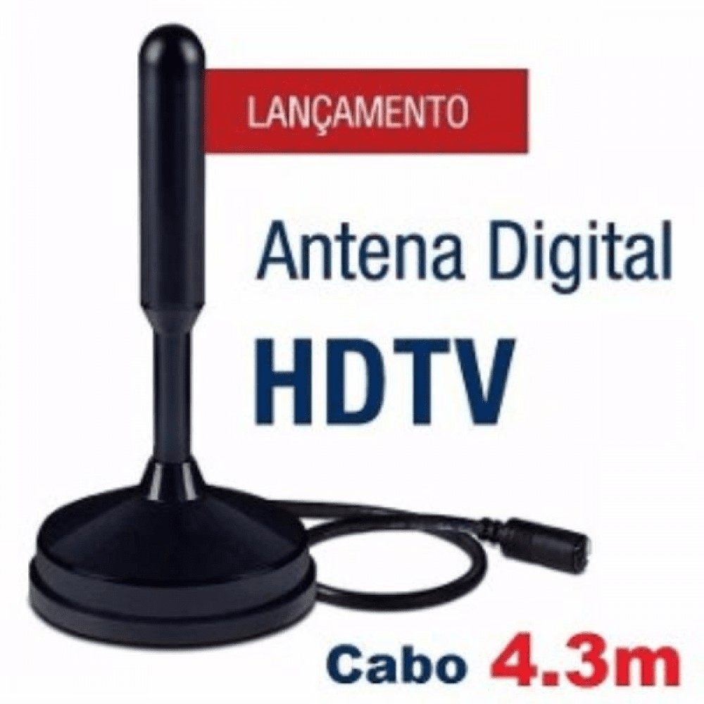 Antena E Cabo 4m com suporte magnético Hdtv Uhf Digital Interna Tv Sinal Hd promoção melhor valor