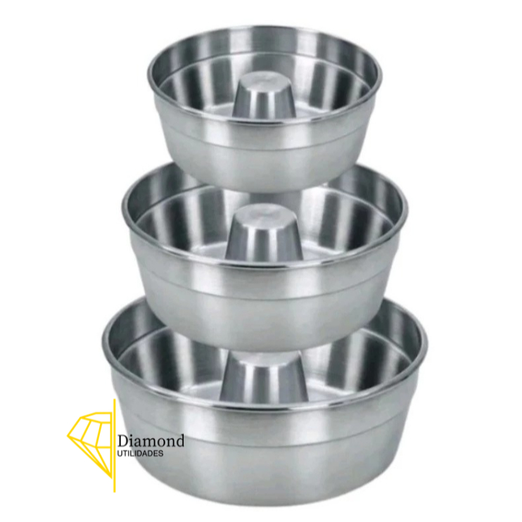 Kit conjunto 3 formas assadeiras de bolo pudim 18, 20, 22 com furo no meio de alumínio