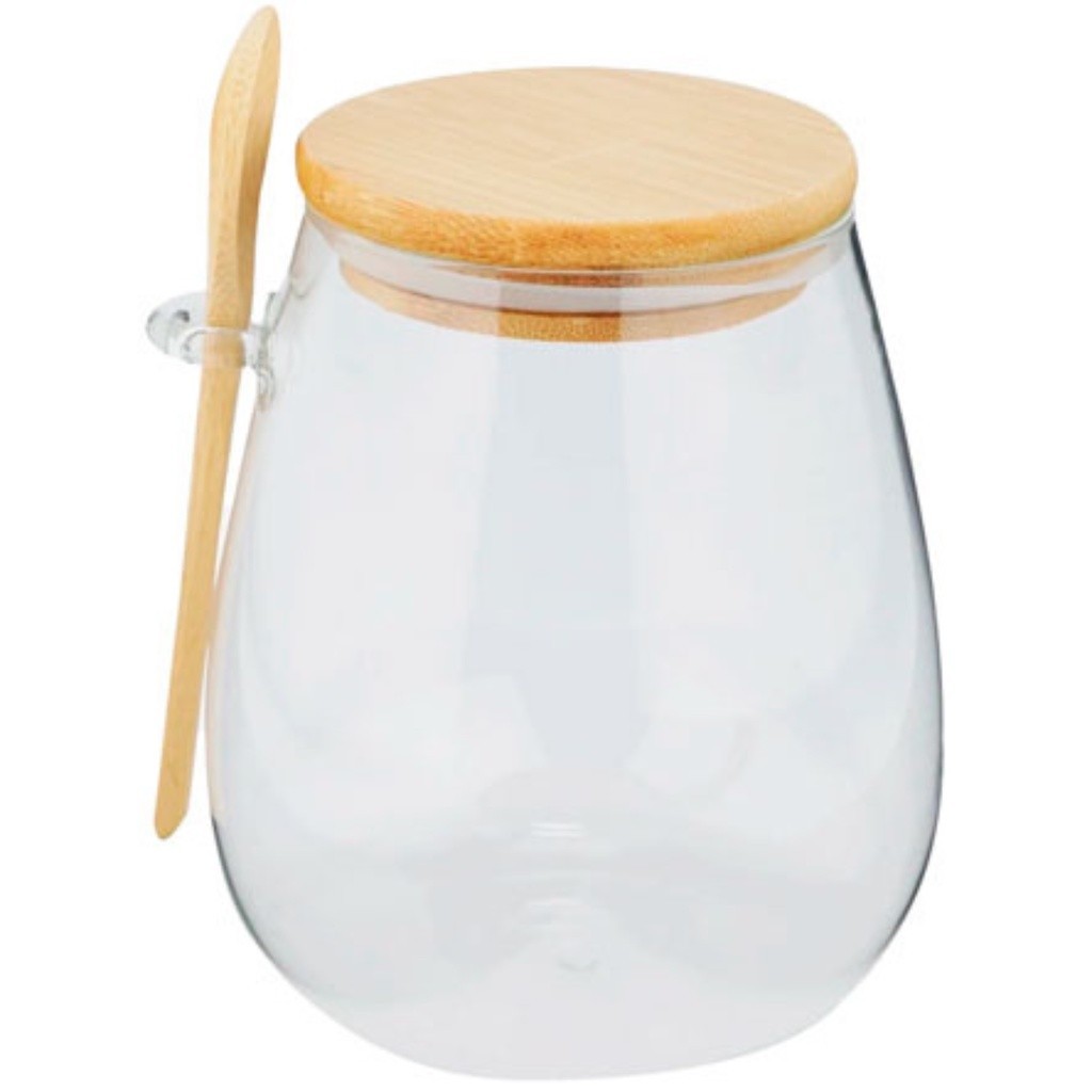 Porta Pote armazenamento comida vidro redondo com tampa e colher em bambu 400 ml