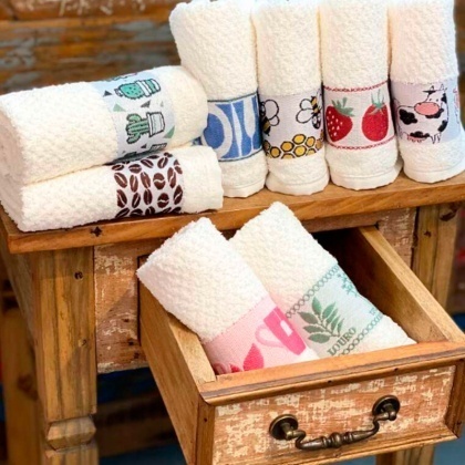 Kit C/5 Pano de Copa/Prato Atoalhado Bordados 45x65cm - 100% algodão