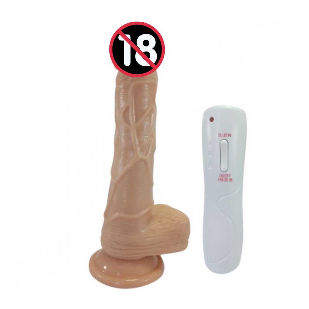 Vibrador Pênis de Borracha Rotativo 360º com Ventosa e Escroto acompanha controle 22cm