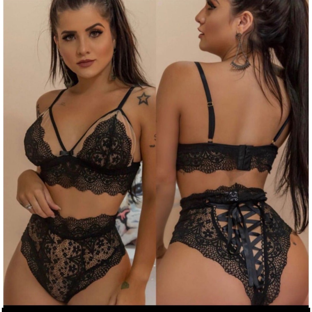 conjunto lacradora sex/conjunto de renda/cropped de renda com tule ilusion/calcinha renda hot