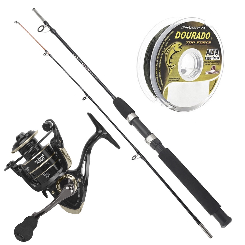 Kit de Pesca Molinete 13 Rolamentos Vara 20lbs Linha Monofilamento