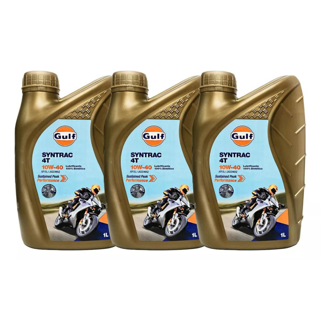 KIT 3 L Óleo Lubrificante Moto 10W40 Sintético GULF SYNTRAC 4T API SL SAE 10W-40