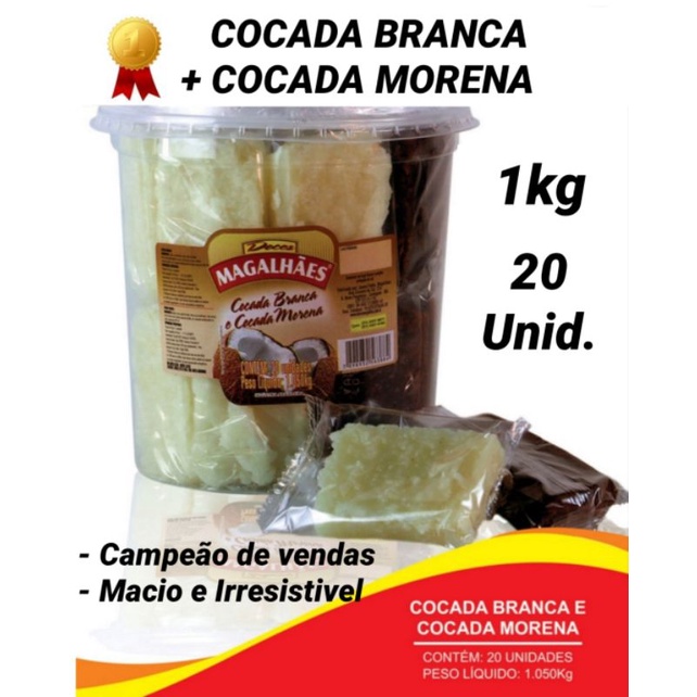 10 COCADA BRANCA + 10 COCADA MORENA/1kg/Doce de côco/Macia/Saborosa