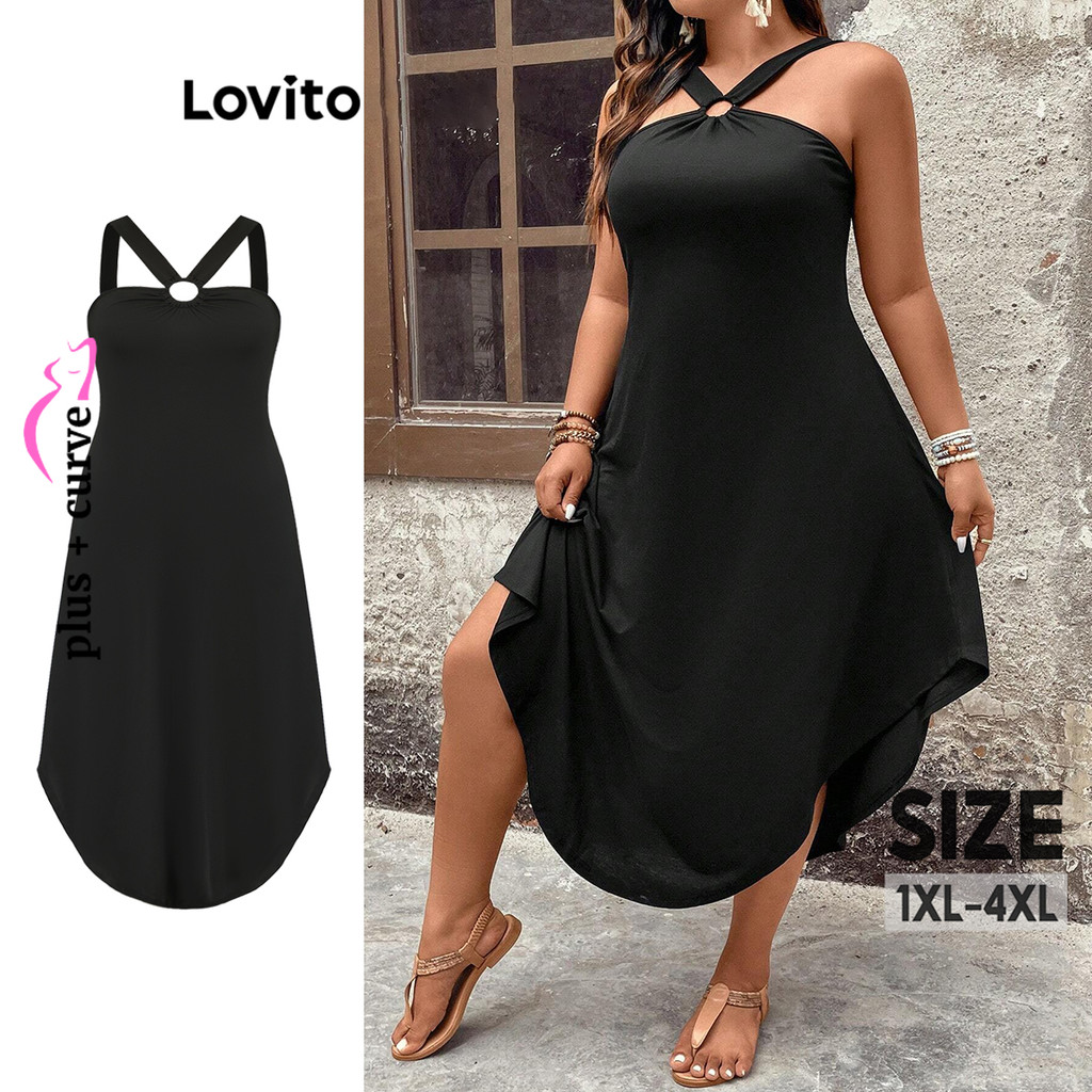 Lovito Vestido plus size casual liso com corte de ombro frio para mulheres LBL16152