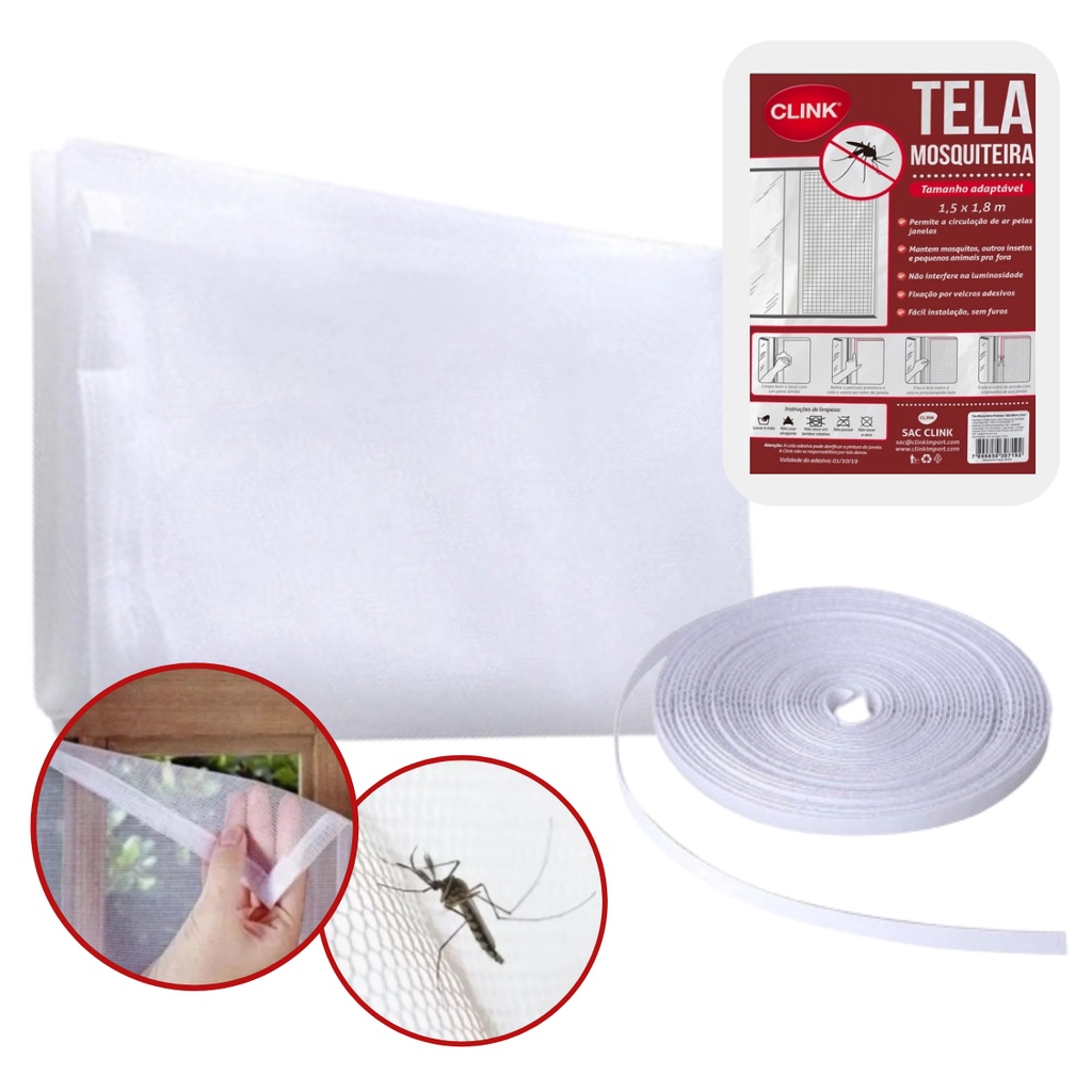 Tela Mosquiteiro Anti Inseto Fita Ajustável - 1,30x1,50 Mts