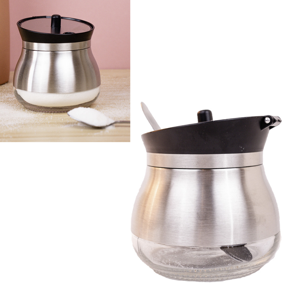 Açucareiro Kit Girl de Inox e Vidro com Tampa e Colher 200ml