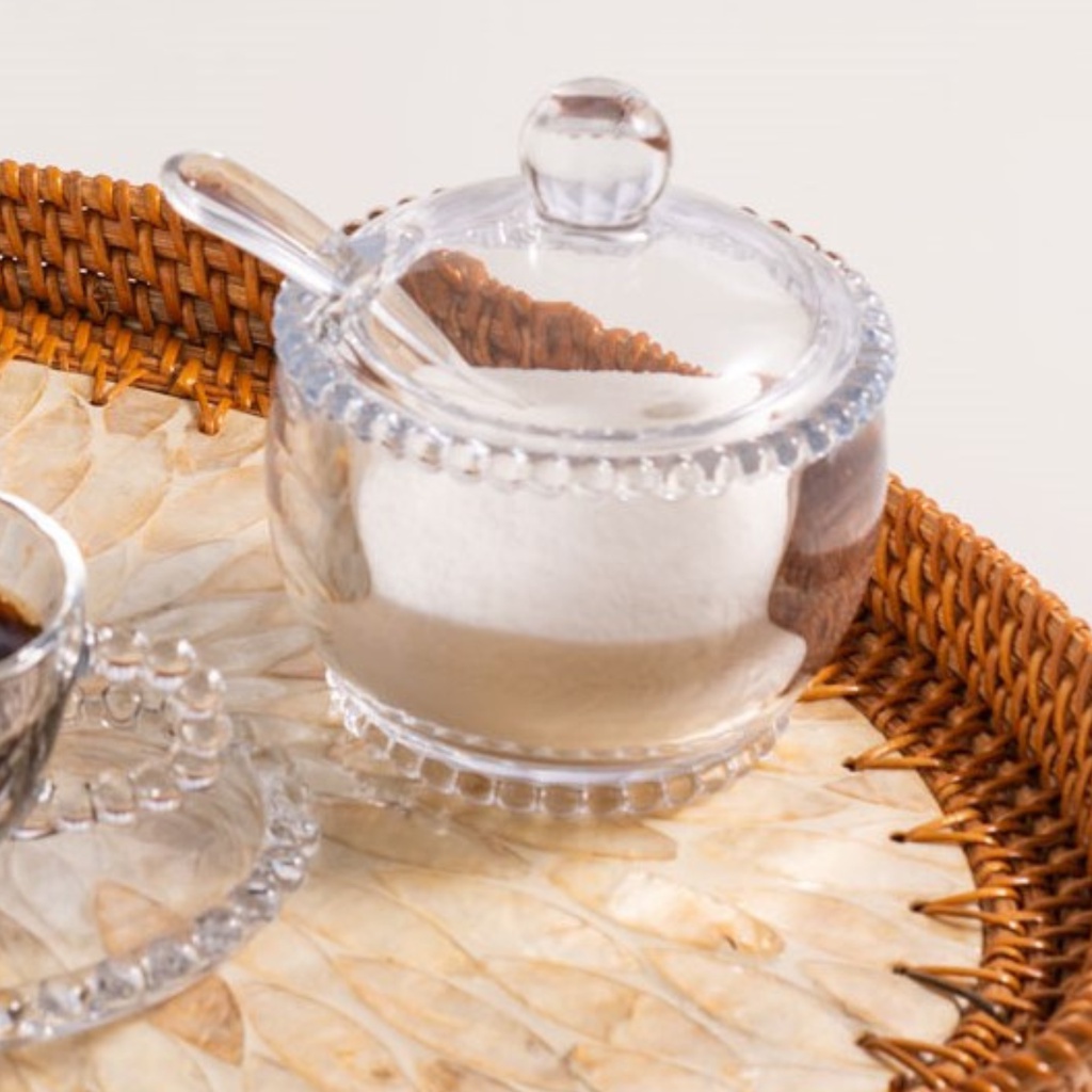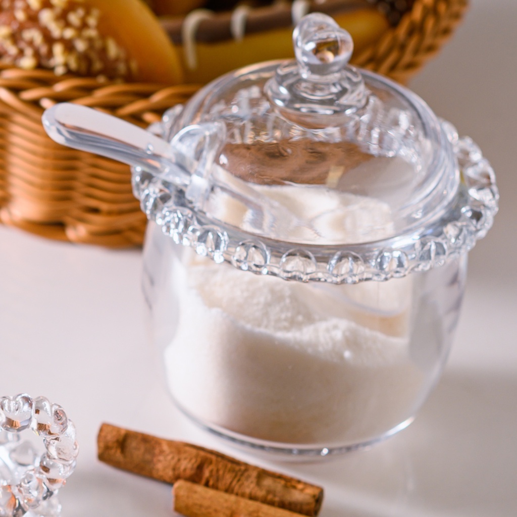 Açucareiro Porta Açucar de Cristal 200ml Pearl Bolinhas Wolff com Colher e Tampa Transparente