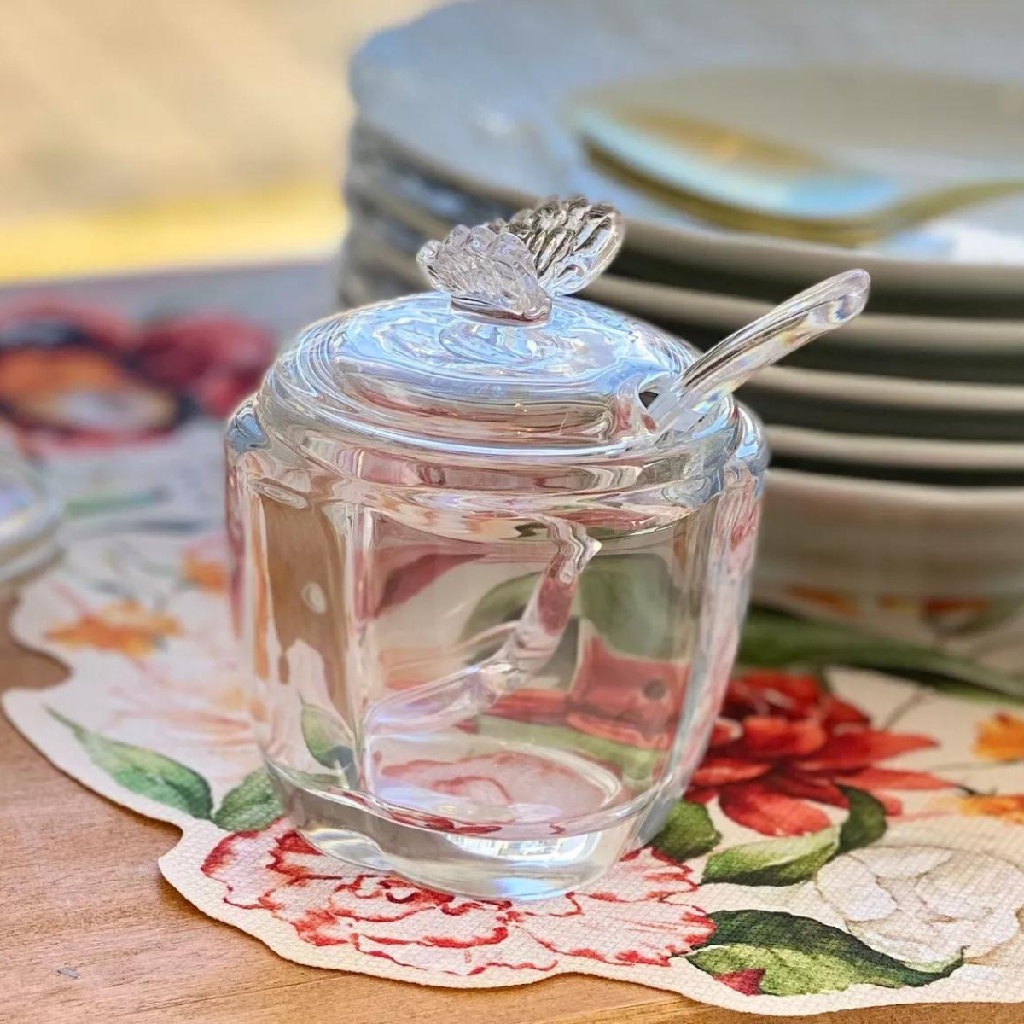 Açucareiro Porta Açucar de Vidro Borboleta Butterfly Borboletinha Wolff com Colher e Tampa Transparente