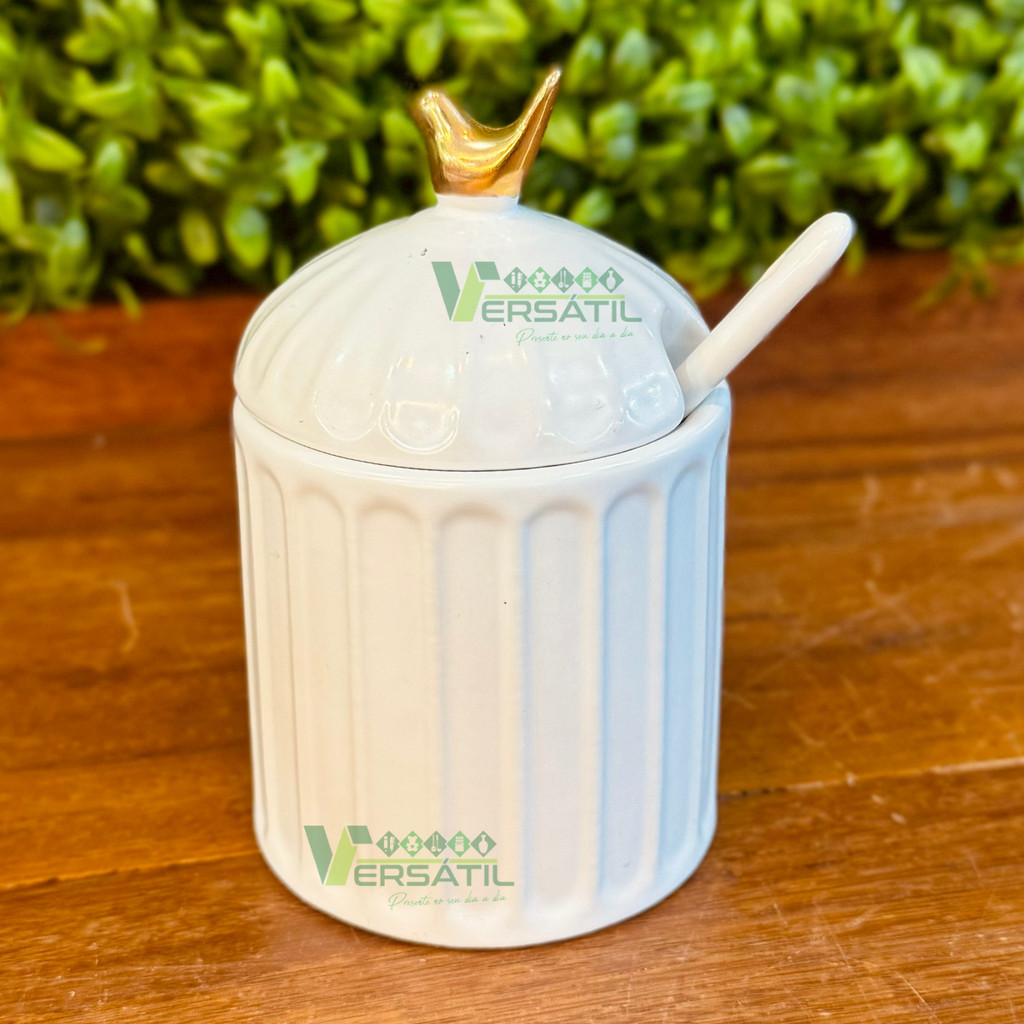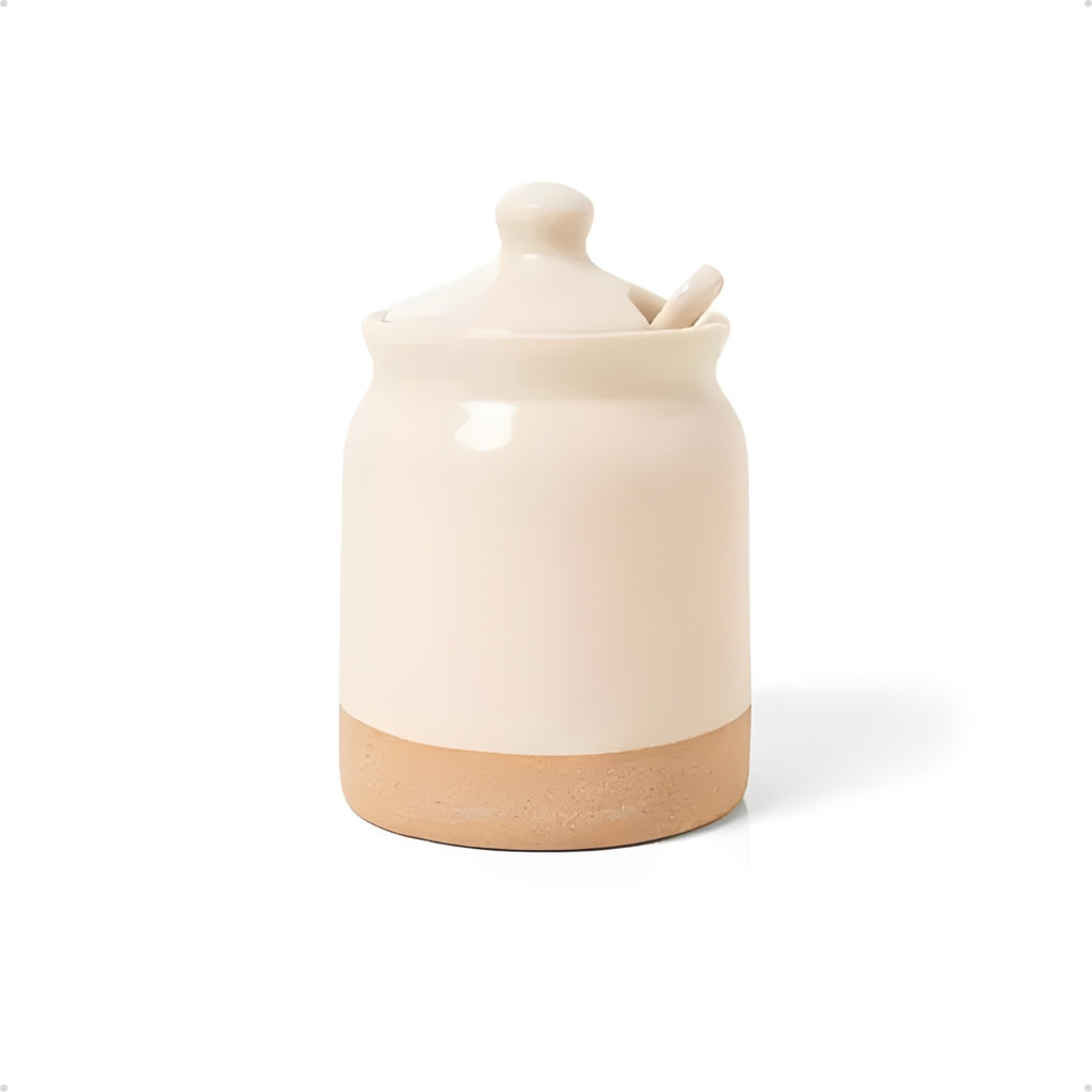 Açucareiro com Tampa e Colher de Cerâmica Bege Pote de Açúcar para Mesa Posta