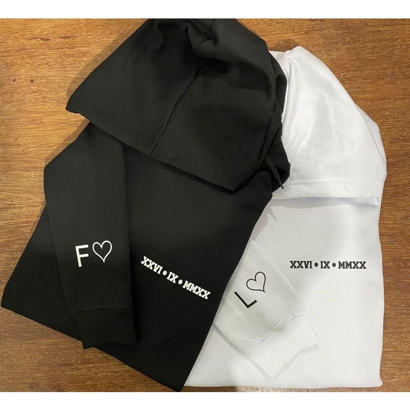 Kit Moletom Casal Data e Letra Personalizada Namorados