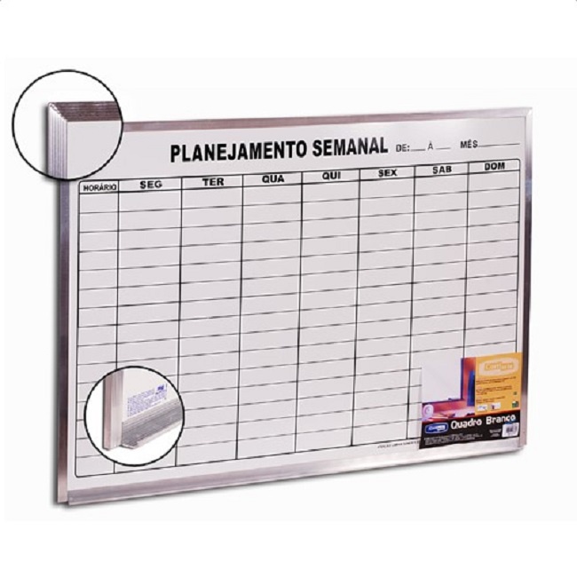 Quadro Branco Em Alumínio Planejamento Semanal 90x60 Cm