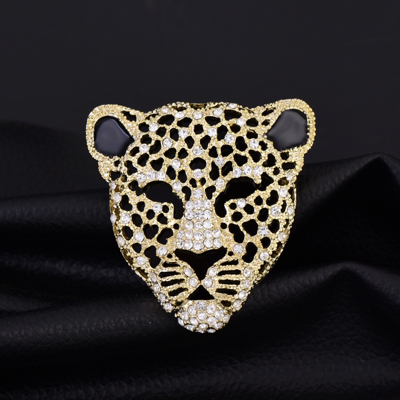 Broche De Pantera De Rhinestone Completa Cabeça Retro Oca De Fato Masculino Espartilho De Animal Feminino Suéter