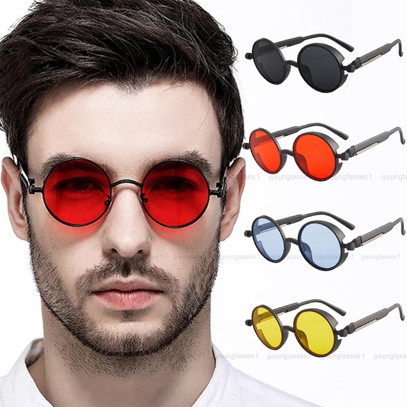 Óculos De Sol Unissex Clássico Estilo Gótico Steampunk Redondo Armação De Metal Com Lentes Coloridas UV400