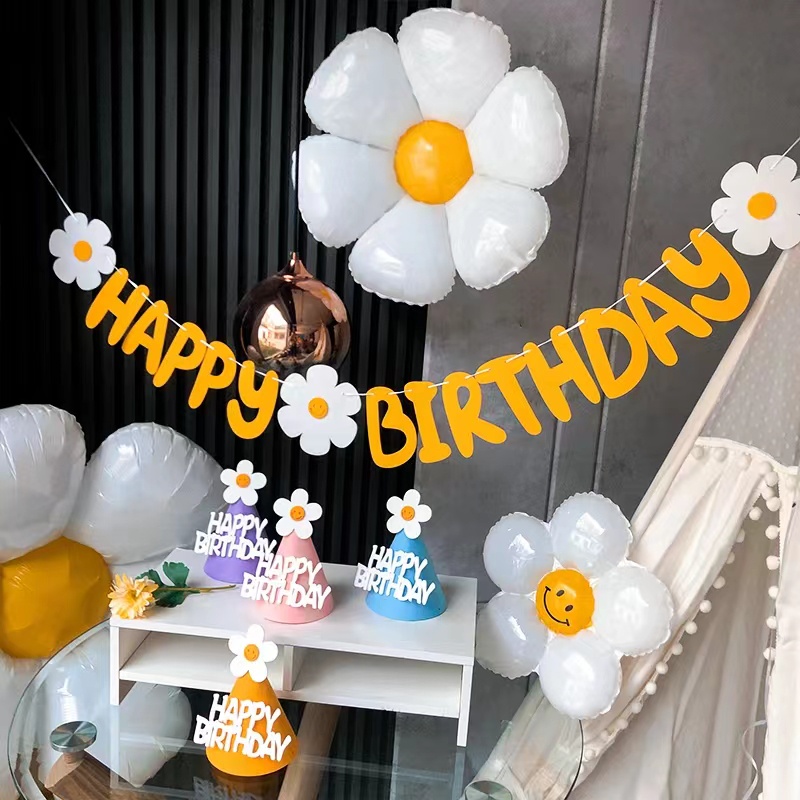 1/2/5pcs Branco Margarida Flor Tema Decoração Do Partido 32 Polegada Número Foil Balões Bandeira Chapéus Foto Quente Adereços Para Festa De Aniversário Casamento