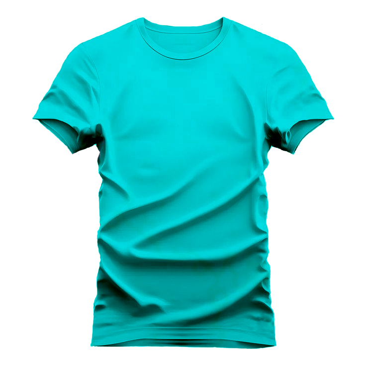 Camiseta Masculina Feminina Unissex Azul Turquesa com Reforço Ombro a Ombro Gola de Ribana