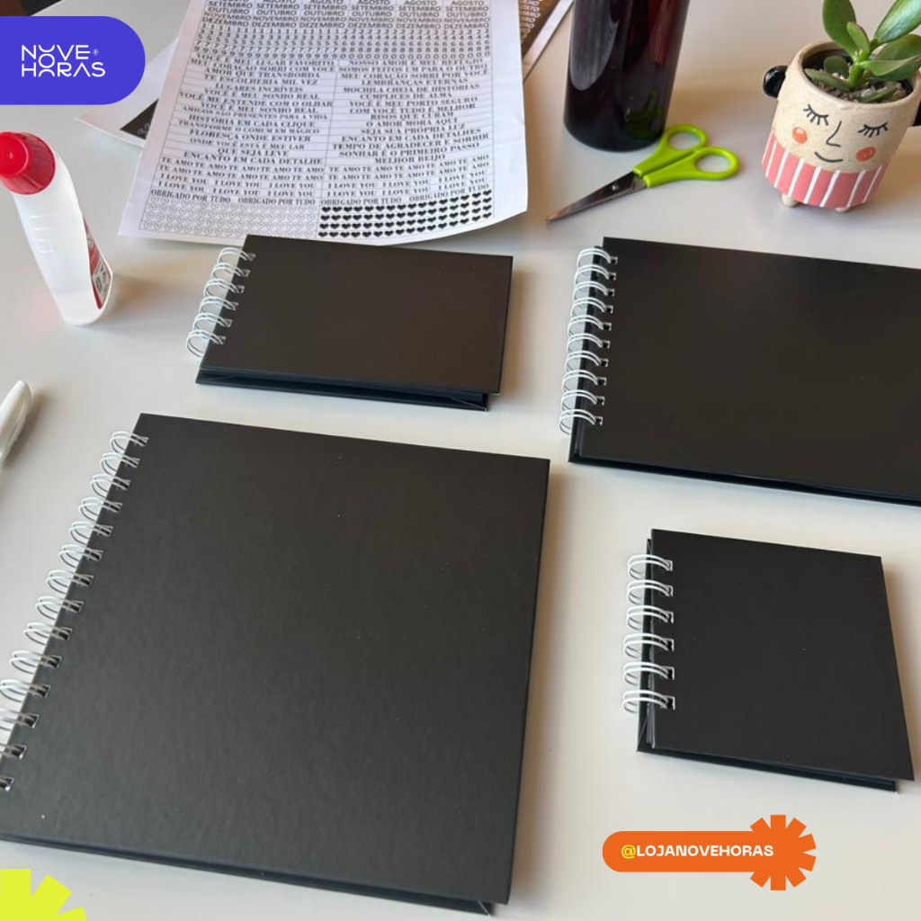 Álbum de Fotos Scrapbook 25 folhas (50 páginas) Preta Lisa Capa Dura 4 Opções de tamanho