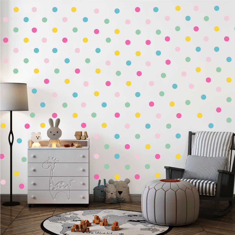 kit Adesivos de Parede Decorativo Bolinhas Coloridas Quarto Bebê 5cm papel de parede