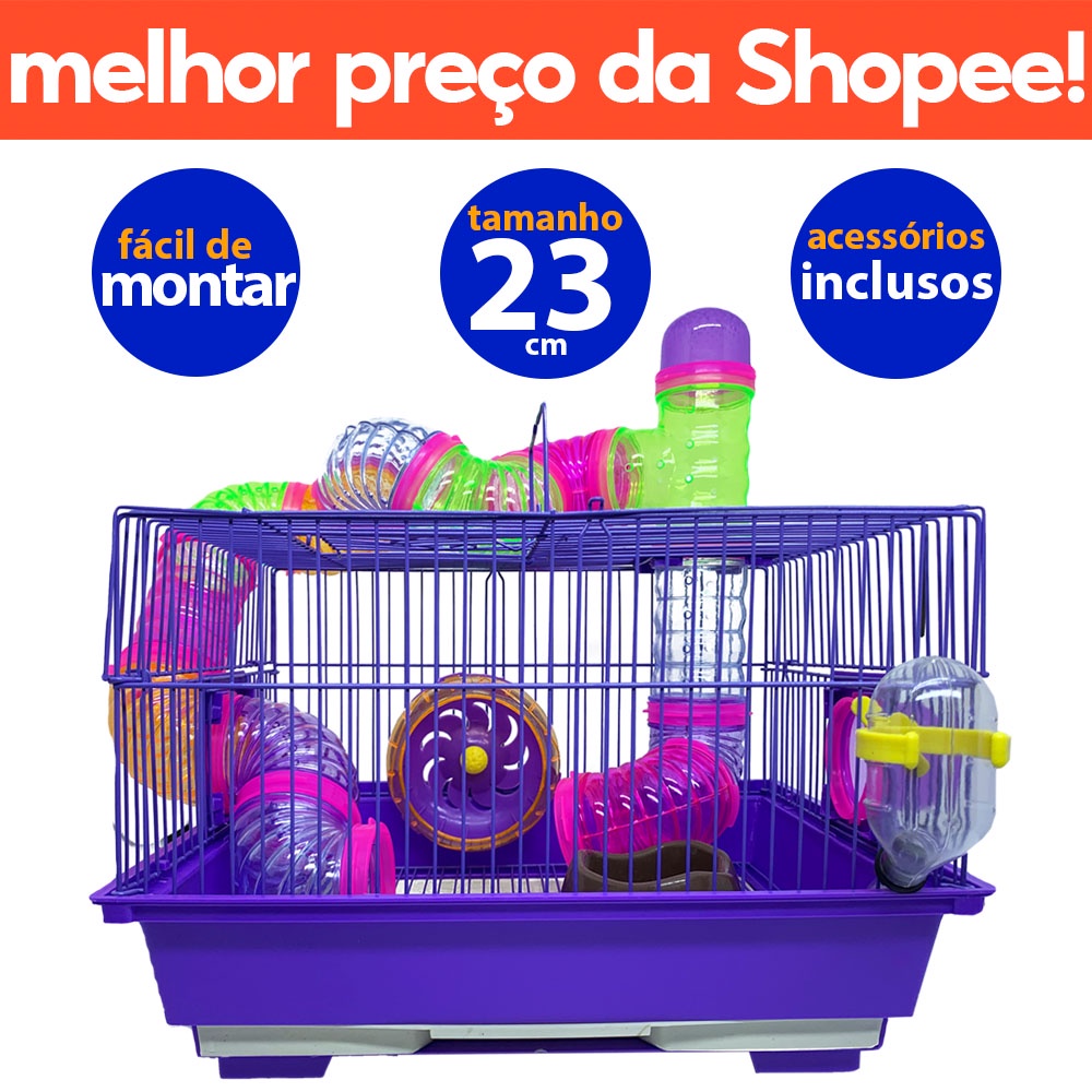 Gaiola Hamster Completa Com Tubo, Rosa de exercício, Bebedouro e COmedouro Luxo 1 Andar Savana Pet