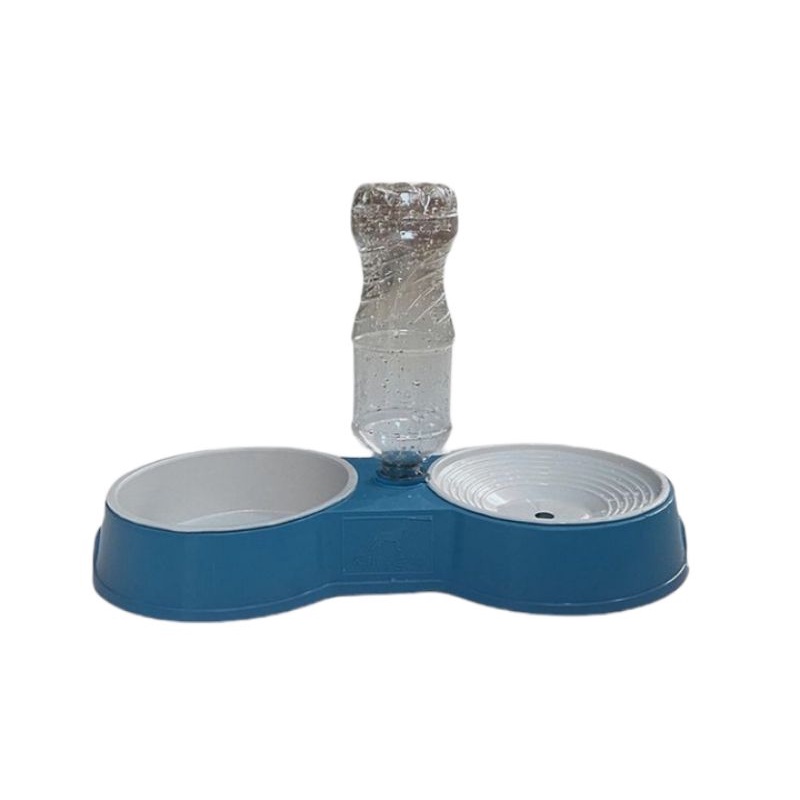 Comedouro e bebedouro automático com porta garrafa pet cães e gatos cor azul