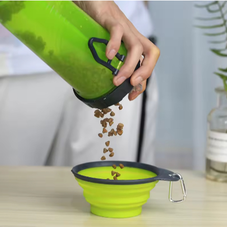 Comedouro e bebedouro retrátil pet com garrafa para transporte de ração e água