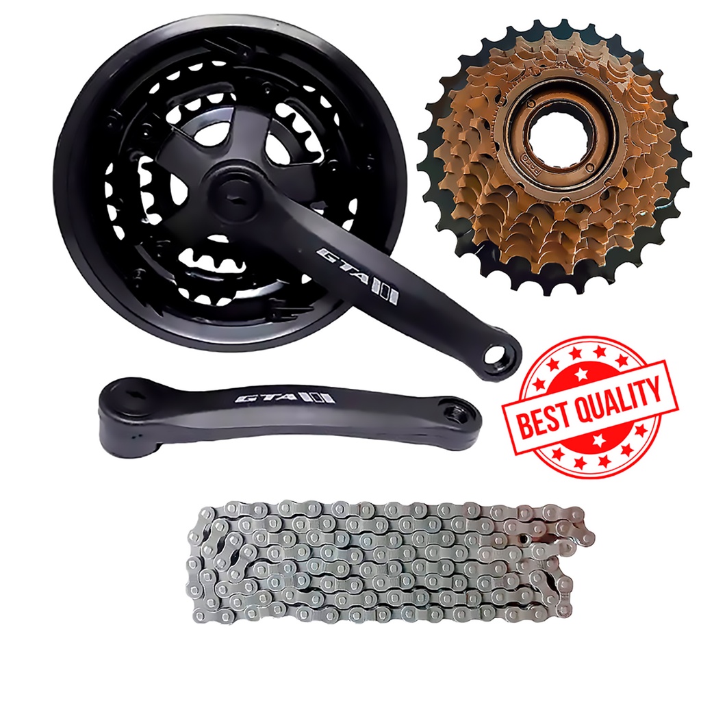 Kit Relação Bicicleta Aro 26 - 29 21v 3x7 Catraca Roda Livre 7 Velocidades + Pedivela GTS Reduzido + Corrente GTS Indexada