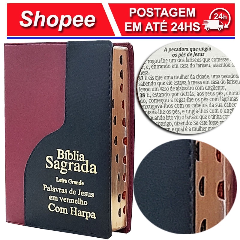 Bíblia Sagrada Possui Letras Gigantes Harpa Cristã Tamanho Grande - Slim Ultra fina - Versão Almeida - Luxo - Índice - Vinho e Preto