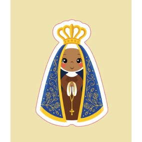 19 Apliques de Nossa Senhora - com fita banana atrás para colar em tubetes, caixinhas, latinhas