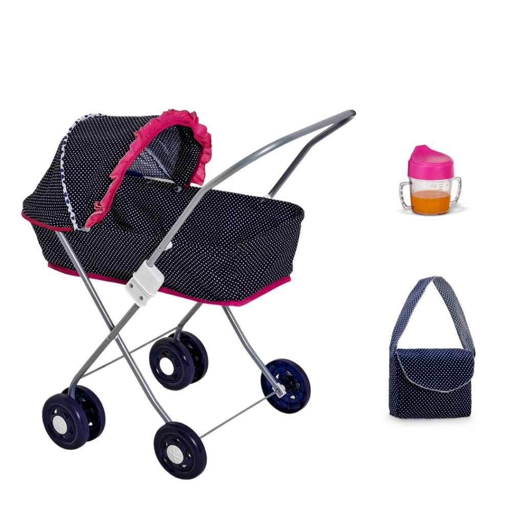 Carrinho De Boneca Bebê Reborn Milano Oliveira Preto/Pink c/ Bolinhhas Brancas