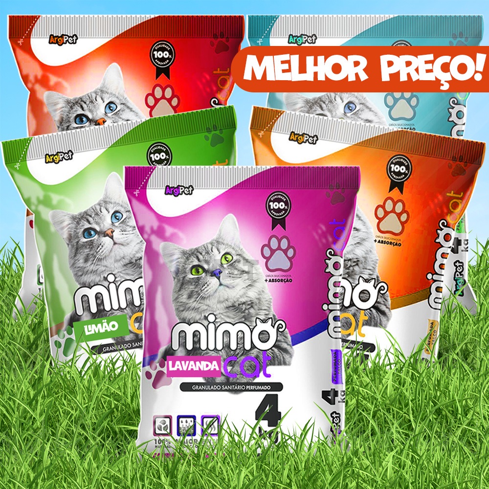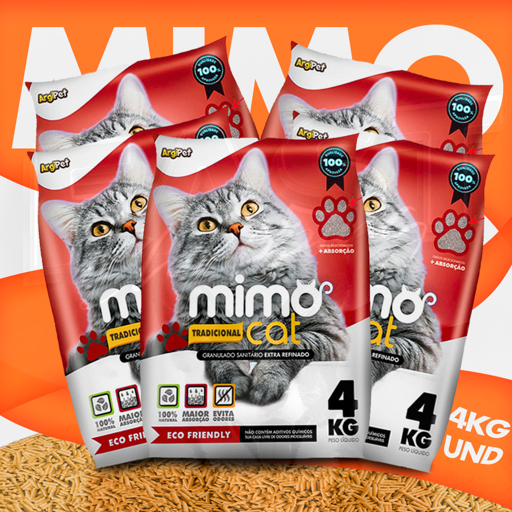 Kit com 5 Pacotes de Areia Sanitária Antiodor Tira Cheiro Mimo Cat Para Gatos Tradicional 100% Natural Argipet 4KG Por Unidade