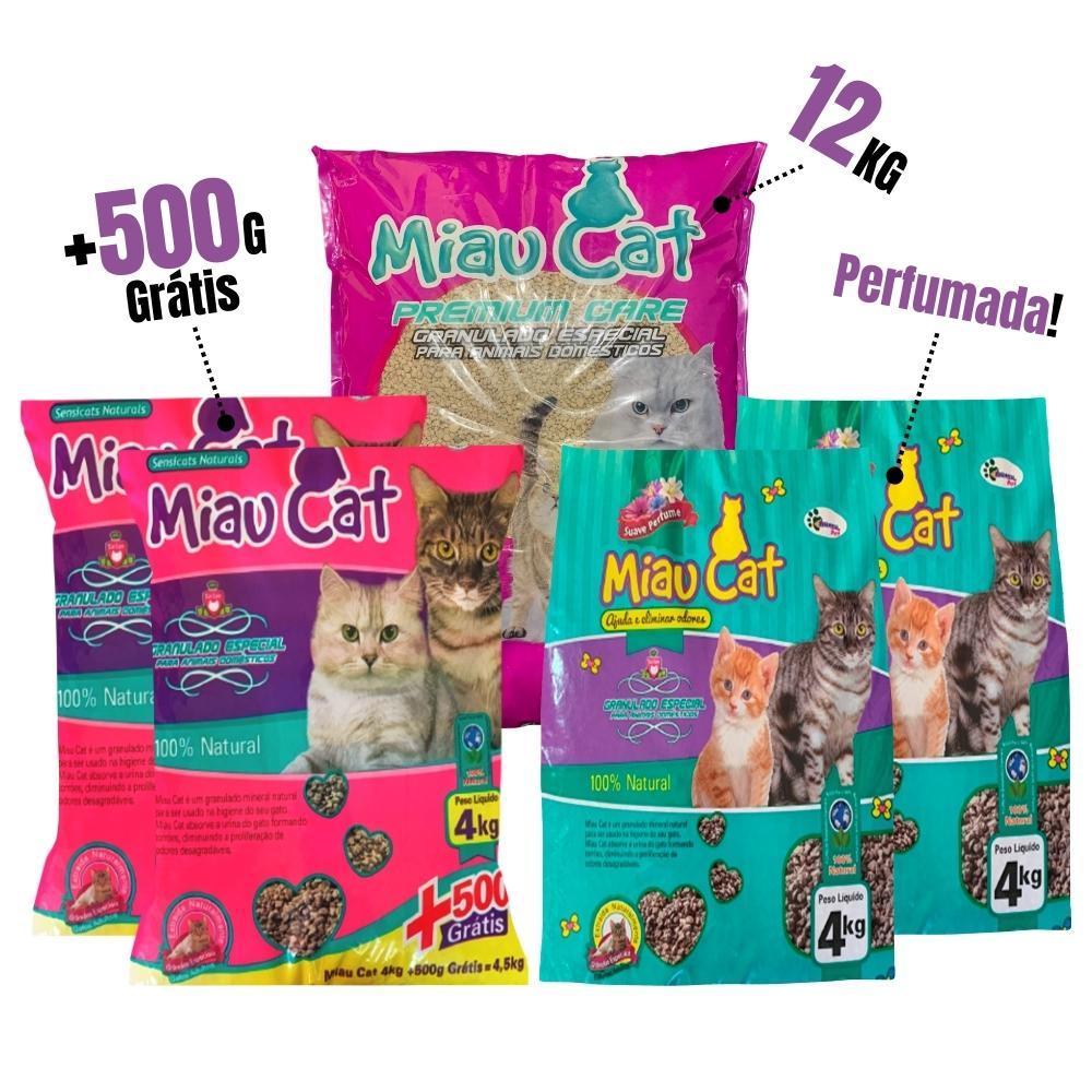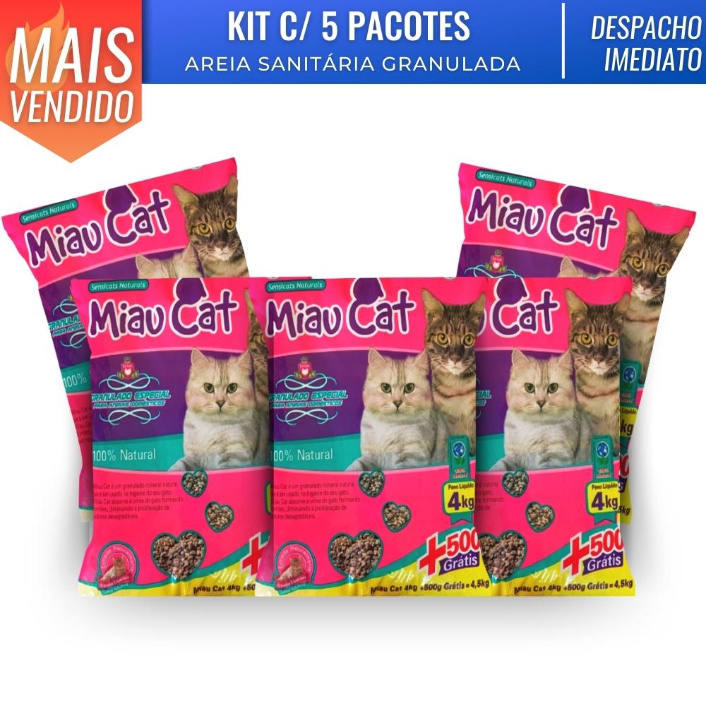 Kit Com 5 Pacotes de Areia Sanitária Antiodor Tira Cheiro Miaucat Para Gatos Tradicional 100%Natural