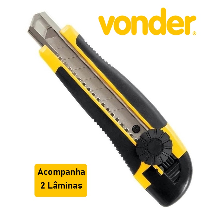 Kit Estilete Vonder Profissional + 12 Lâminas Emborrachado Com Trava 18mm de Precisão Alta Qualidade