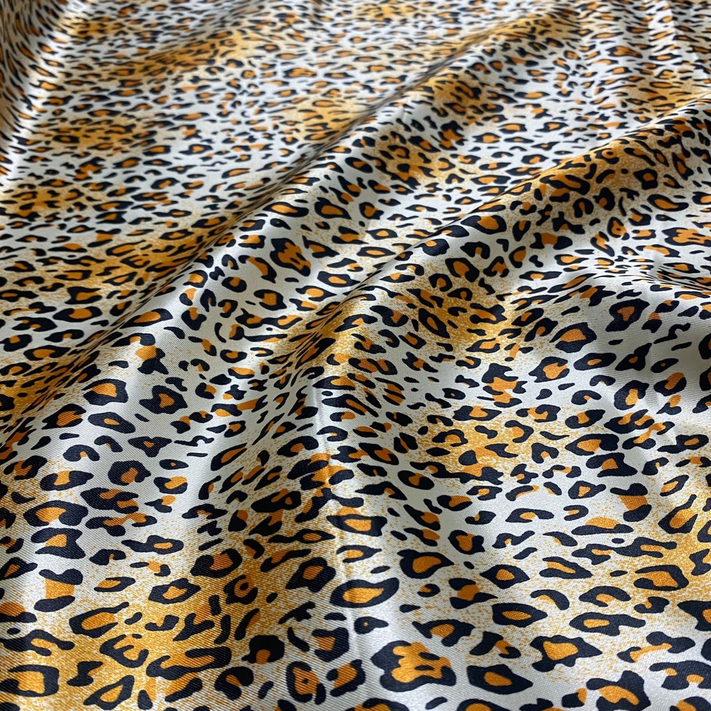 Tecido Cetim Estampado Oncinha Marrom 1,40m Para Roupas