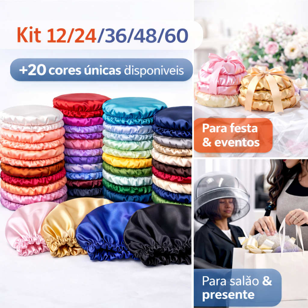 Kit com 30 Toucas de Cetim Anti Frizz Cores Sortidas - REVENDA