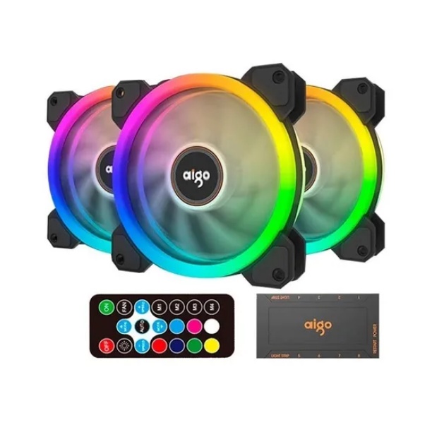 Kit 5/6/8 Fan Cooler RGB Aigo DR12 Pro / Ice Storm 5 6 8 Fans + Controle, 120mm 12v, ventilador silencioso, Preto