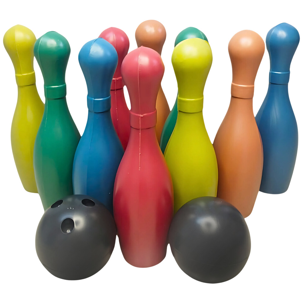 Jogo de Boliche Bolichão Infantil C/ 10 Pinos 30cm e 2 Bolas Brinquedo Resistente Grande d/ plástico