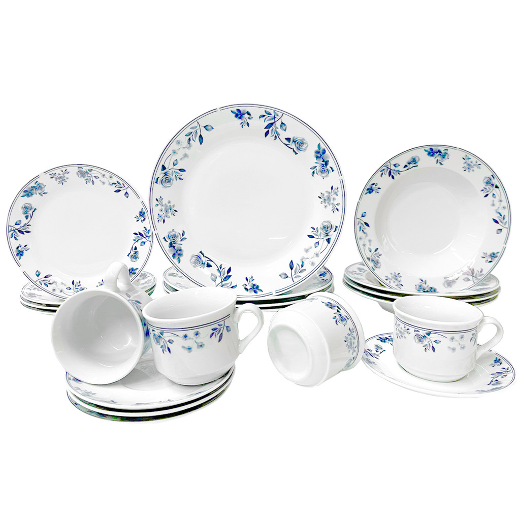 Aparelho de Jantar e Chá Porcelana 20 peças Ryo Maresia Jogo de Pratos e Xícaras Oxford
