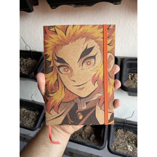 Sketchbook Caderno Demon Slayer Kyojuro Rengoku com Elástico e Marca Página