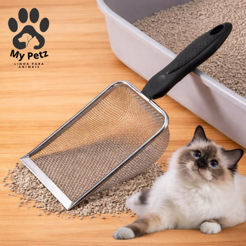 Pá Peneira de Areia Coletora Higiênica Pet Gato Cachorro Lagarto Aço Inox - Caixa de Areia