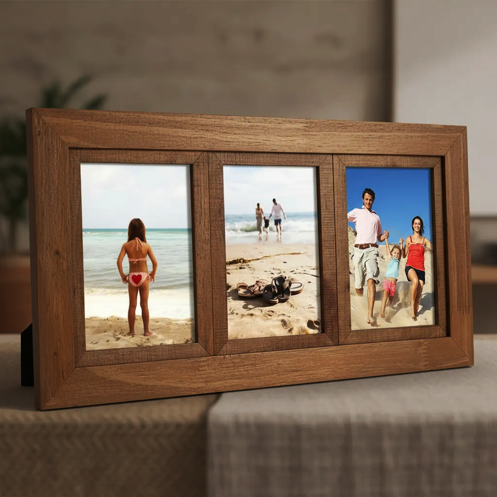 Porta Retrato Painel Quadro para 3 fotos 10x15cm com moldura Branca, Preta, Betume