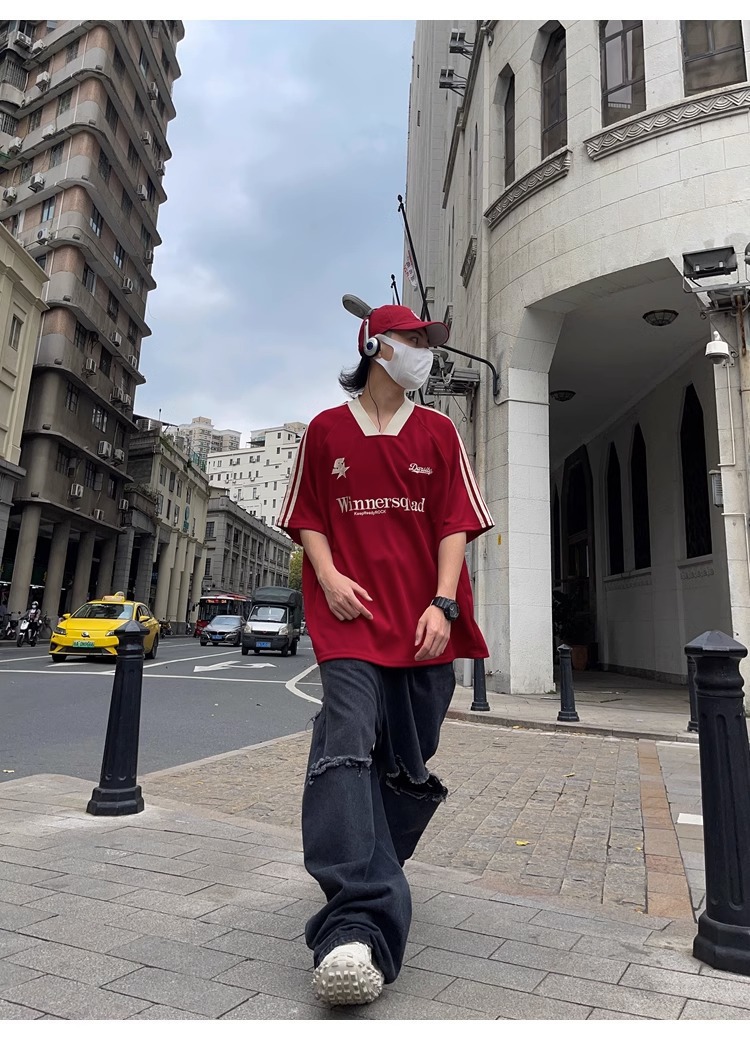 [Camiseta De meia manga] Basquetebol Europeu Americano Homens Casual Rugby Jersey Retro Camiseta de meia manga Hip-Hop Sports Style High Stre