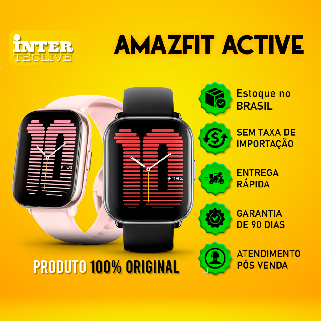 Relógio Smartwatch Amazfit Active ( Preto, ) Com Alexa GPS Integrado, Tela 1.75 Global português Brasil original