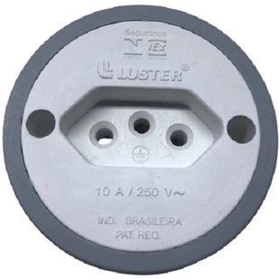 Tomada Externa Redonda 2P+T 10A 110/220v Com Parafuso e Bucha Ref.1078 LUSTER Cod.871 RACRAFI