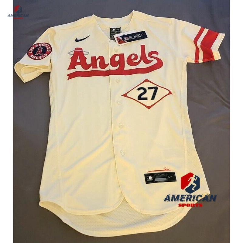 Masculina Camisa 2023MLB Los Angeles Angels 27 Mike Trout Camiseta Branco De Beisebol Jersey