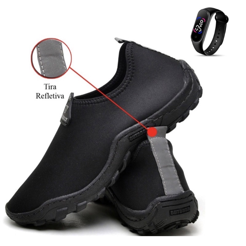 Sapatilha Neoprene Aquática Tênis Híbrido Super Leve Ciclista Jet-sky Surf Ciclismo Cachoeira Pesca Masculino Feminino Seca Rápido + Relógio Digital